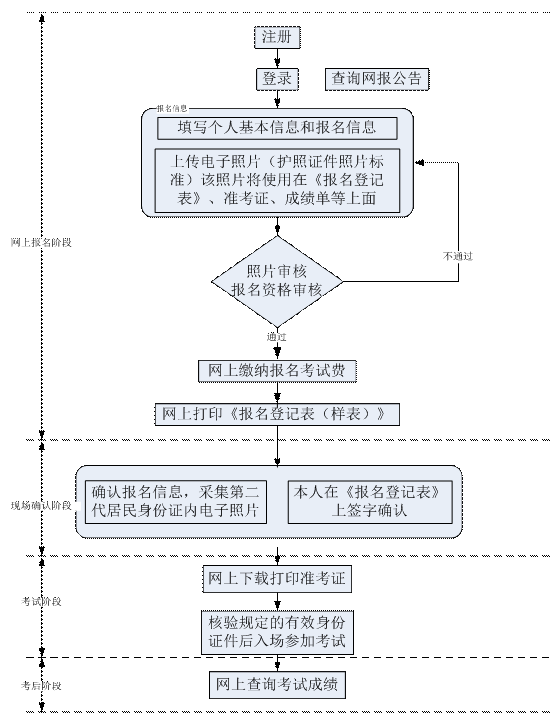 1.考生应在规定的时间内完成网上报名和现场确认,逾期不予办理。只完成网上报名但未在规定时间内办理现场确认手续的,本次报名无效,所缴报名考试费不予退还。