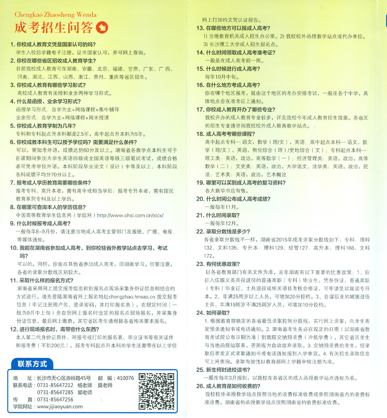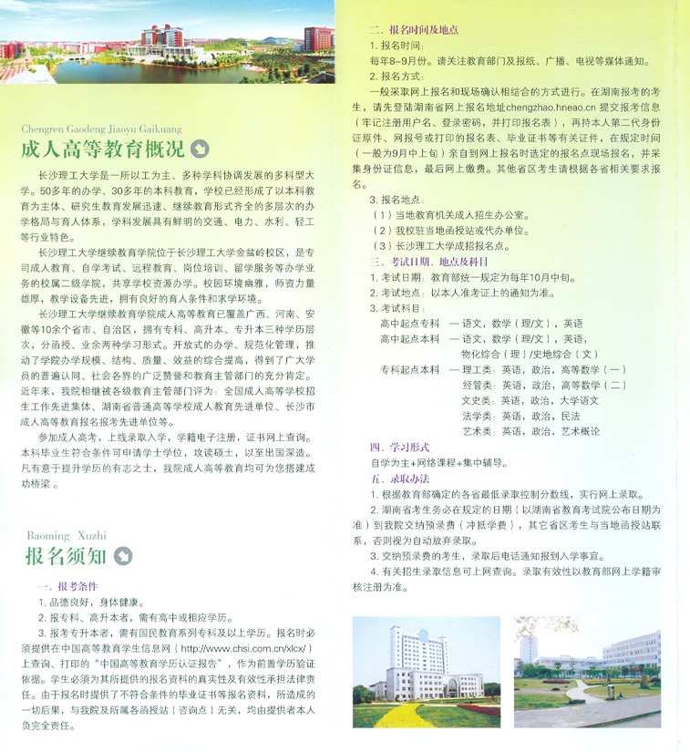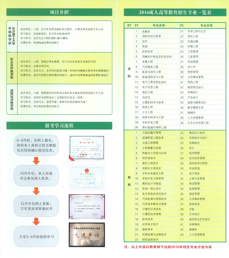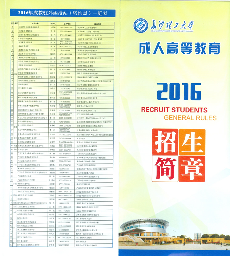 长沙理工大学成人高等教育2016年招生简章