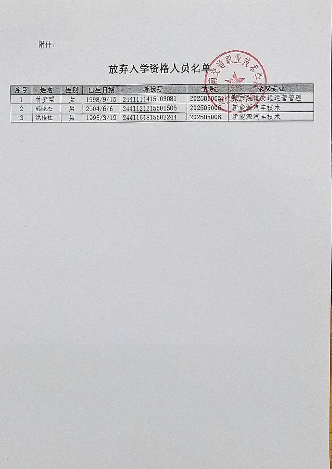 附件:放弃入学资格名单。